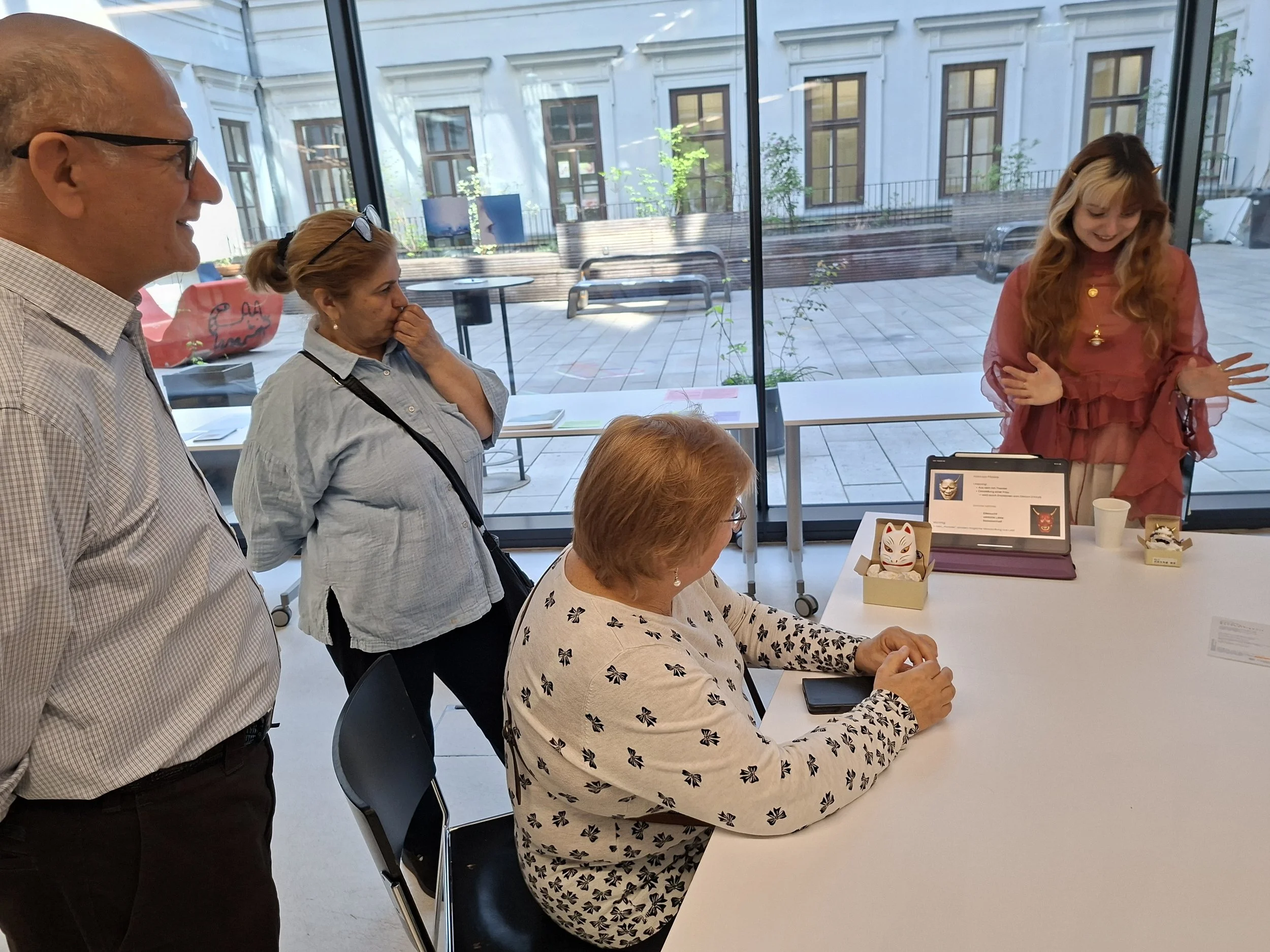 Raum für Nachhaltigkeit (RFN) auf der Angewandten am 24.4.2026 im Bild von Links: Corona Gsteu, Ahmed Zirek, Saime Zirek und Ilona.